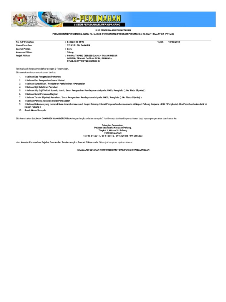 Related : Permohonan Rumah Prima Pahang / Tingkat 16, kompleks teruntum, jalan mahkota, 25000 kuantan.